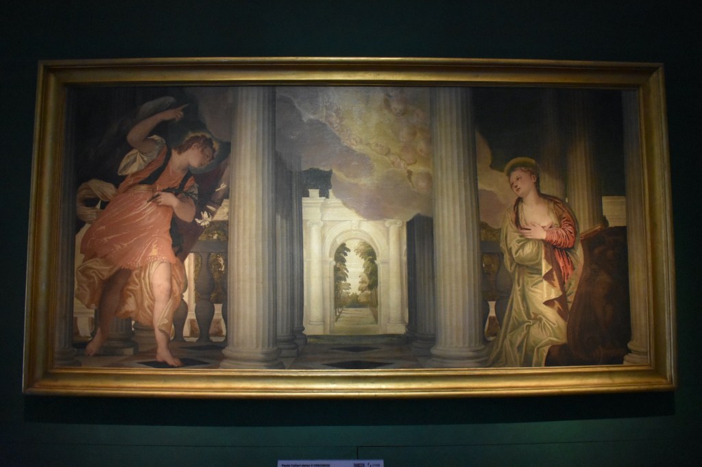 The clever niche that both portraits employ is indicative of Veronese’s skill in perspective (creating three-dimensional space on a flat surface), a skill which he also employs in another early piece in this room, his Annunciation (1556).