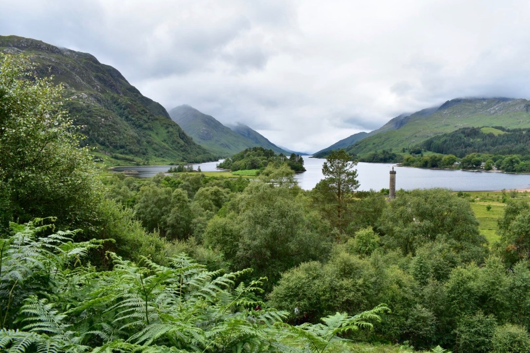 Well known now as the home to the viaduct that appears in the Harry Potter movies (see picture below), Glenfinnan has a tragic past. It was here that the Bonnie Prince Charlie first raised his father’s standard. The monument you see in the pictures below is a memorial for the Highlanders that lost their lives because they supported the Bonnie Prince. If you are at all interested in the Prince’s claim to the British throne, click here.