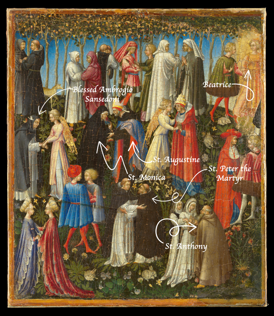 Another piece of the predella (also located in the Met) depicts Paradiso, the moment when mankind redeems itself and enters into the kingdom of Heaven.