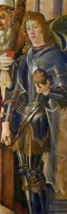Here, Vulcan (Hephaestus) is forging Cupid’s arrows with help from his wife, Venus. On the right are the Cyclopes (Steropes, Brontes, and Pyracmon) making Zeus’ thunderbolts. According to Vasari, Cosimo, like Vulcan, is a forger, but instead of arrows and thunderbolts, Cosimo forges virtues. Also as Vulcan made Achilles’ beautiful armor, Cosimo’s regin produced beautiful art and innovations. (During the Trojan War, Achilles’ mother, Thetis asked Vulcan to make her son impenetrable armor; Thetis raised Vulcan after his mother, Juno (Hera) discarded him because she thought him hideous, and so he could not refuse Thetis anything).