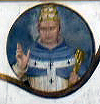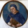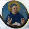 St. Francis is recognizable from the stigmata on his hands, as well as his monastic robes. He appears clean-shaven, which is in contrast to 13th century depictions of the saint showing him bearded. During the end of the 13th century, however, beards had become associated with the poor, uneducated, and sick. Therefore, the wealthy merchant class wanted to disassociate St. Francis from his revolutionary ideas of poverty and began commissioning works with a clean shaven St. Francis whereas the political factions that favored social chance favored a bearded saint. Thus, both depictions were in use during the 15/16th centuries.