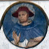 The cover of the portrait contains the words, “SVA CVIQVE PERSONA,” meaning “to each his own mask.” This phrase was likely derived from Adagia, a collection of proverbs published by the well-known humanist Erasmus. The proverb “suum cuique mihi meum,” translated literally as “to each his own, and mine to me,” was usually cited to explain that people prefer whatever they view as their own, whether that be their own looks, country, family, etc. The ancient Roman orator Cicero was famously fond of the proverb, and it is from one of Cicero’s letters that Erasmus quotes in his Adagia: