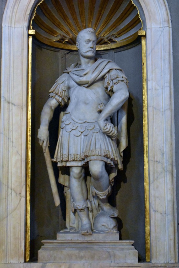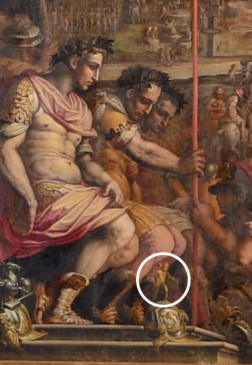 The last room celebrates Gualdrada, a Florentine woman who refused to kiss Emperor Otto IV, stating that she would only kiss her future husband. Thus, Gualdrada represented modesty and virtue, as well as Florentine independence. Interestingly, Cosimo’s marriage to Eleonora (the daughter of Don Pedro di Alvarez di Toledo, who served as Emperor Charles V’s viceroy in Naples) only served to tighten Florence’s ties with the Holy Roman Empire. Perhaps Gualdrada’s inclusion within Eleonora’s apartments was meant to assuage any fears that the Duchess lacked independence from the Empire.